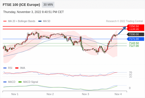 英国富时100指数期货 当日内: 看涨,当 7171.00 为支撑位。
