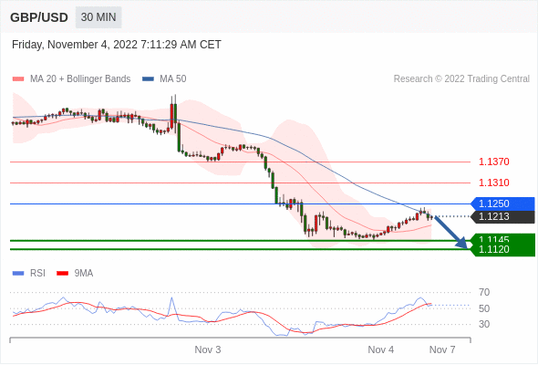 在 1.1250 之下,看跌,目标价位为 1.1145 ,然后为 1.1120 。