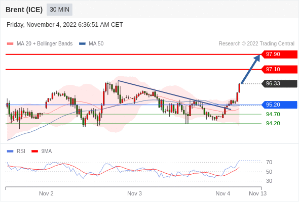 在 95.20 之上,看涨,目标价位为 97.10 ,然后为 97.90 。