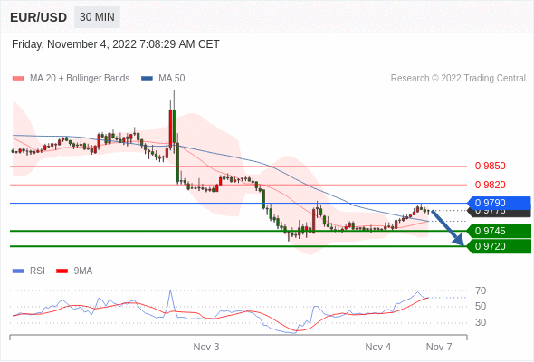 在 0.9790 之下,看跌,目标价位为 0.9745 ,然后为 0.9720 。