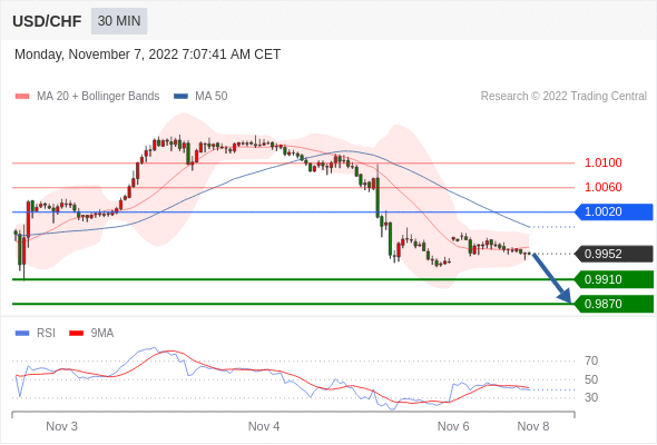 在 1.0020 之下,看跌,目标价位为 0.9910 ,然后为 0.9870 。