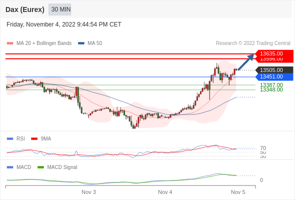 如跌破 13451 ,德国DAX指数期货 (Eurex) 目标方向定在 13387 和 13348 。