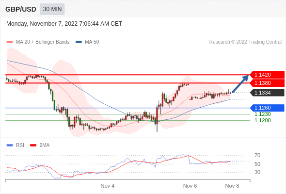 在 1.1260 之上,看涨,目标价位为 1.1380 ,然后为 1.1420 。