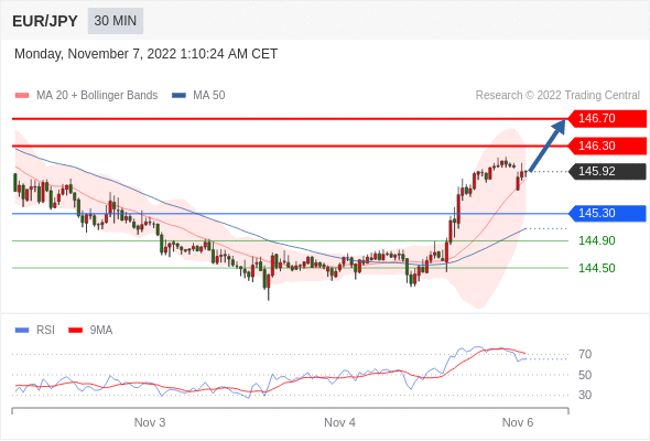 在 145.30 之上,看涨,目标价位为 146.30 ,然后为 146.70 。