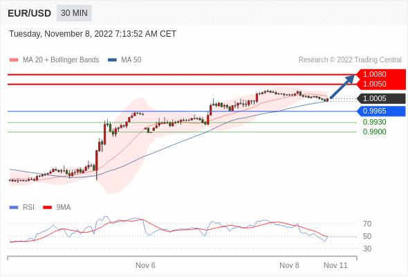 在 0.9965 之上,看涨,目标价位为 1.0050 ,然后为 1.0080 。