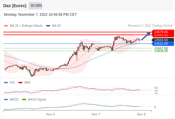 如跌破 13512 ,德国DAX指数期货 (Eurex) 目标方向定在 13447 和 13408 。