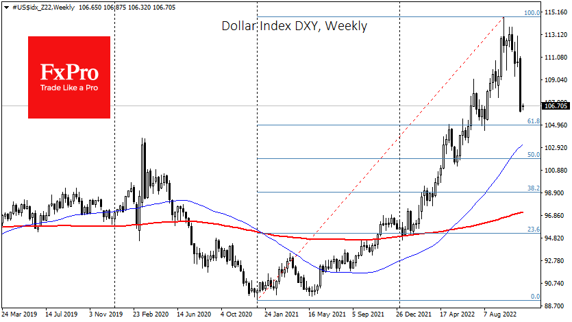 美元指数上周下跌了4%,这是自2020年3月以来的最大跌幅。这种与趋势相反的强劲走势往往预示着趋势的进一步逆转。然而,它可能是一个较慢的下降速度,而不是我们在过去10天看到的单行道趋势。