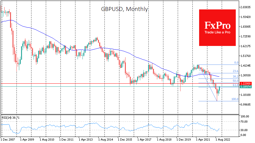 英镑兑美元周二突破1.19,较9月26日创下的低点1.0330上涨了15%以上。从2021年的高点到9月的低点,英镑克服了下跌幅度的38.2%以上的回调,这是一个重要的斐波那契回调水平。突破这一关口表明,在新一轮下跌之前,我们看到的不仅仅是英镑的修正反弹。
