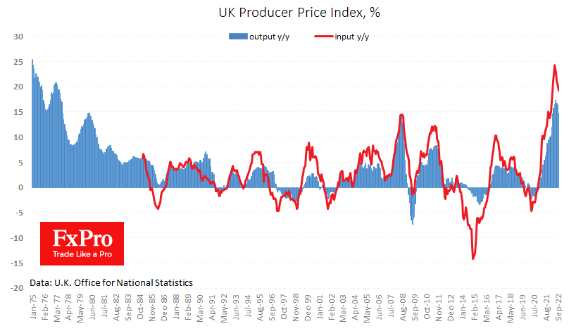 生产者价格的增长速度正在放缓。 PPI投入价格同比上涨0.6%,同比上涨19.2%,而一个月前为20.7%,并在6月份达到24.3%的峰值。 从7月到10月,这一指数上涨了0.66%,暗示了不到2%的环比涨幅--尽管不是价格修正,但这是一个决定性的降温。