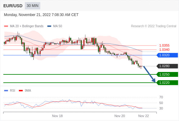 在 1.0320 之下,看跌,目标价位为 1.0250 ,然后为 1.0220 。