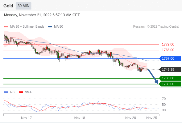 在 1757.00 之下,看跌,目标价位为 1736.00 ,然后为 1730.00 。
