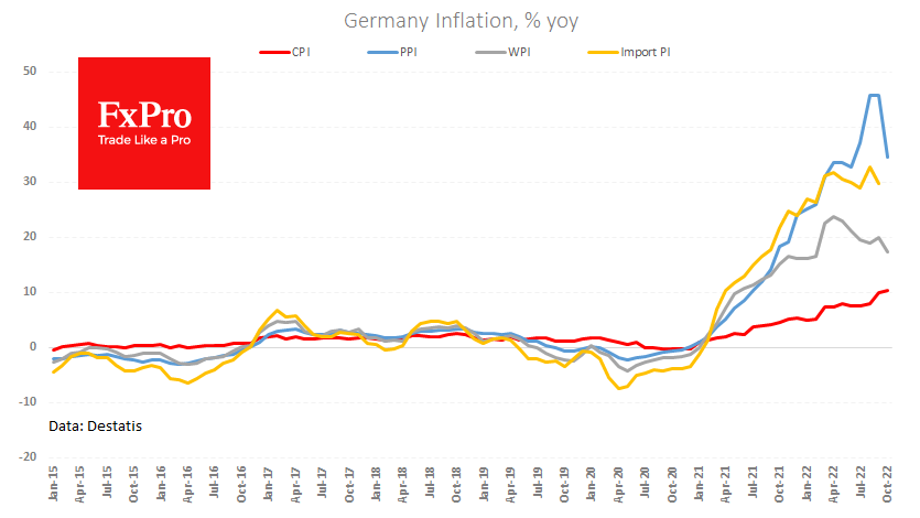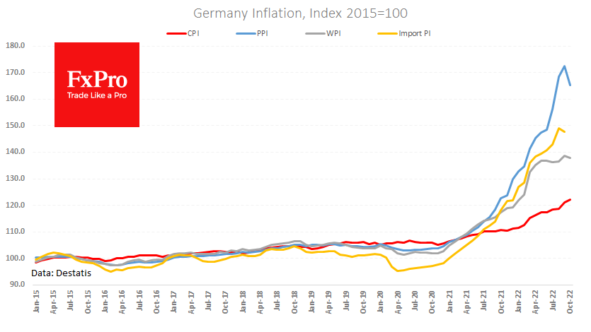 10月份的价格下跌是反对欧元的一个理由,因为它在一定程度上接近欧洲央行停止加息的临界点。但与此同时,我们应该记住,欧洲央行在本应开始抗击通胀的时候睡过头了,导致其通胀水平高于美国和瑞士。