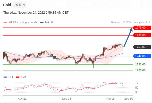 在 1742.00 之上,看涨,目标价位为 1767.00 ,然后为 1776.00 。