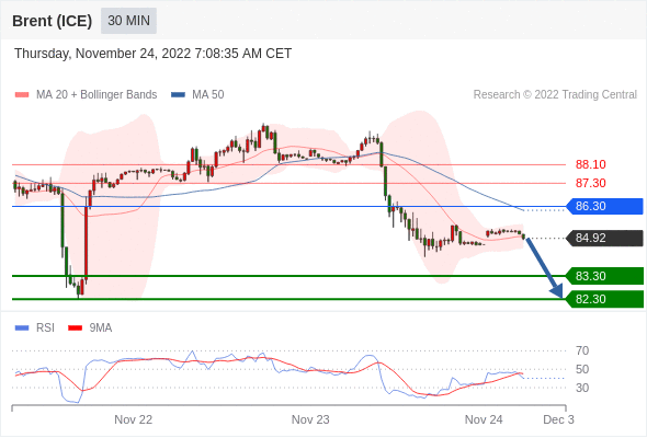 在 86.30 之下,看跌,目标价位为 83.30 ,然后为 82.30 。