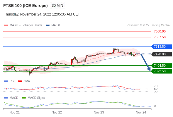 英国富时100指数期货 当日内: 看跌,在 7513.50 之下。