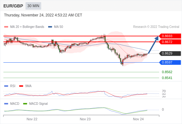 欧元/英镑 当日内: 看涨。