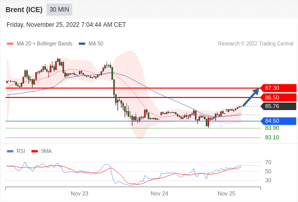 在 84.50 之上,看涨,目标价位为 86.50 ,然后为 87.30 。