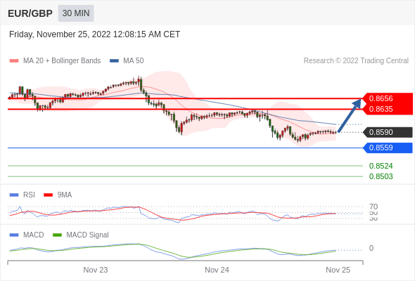 欧元/英镑 当日内: 有上涨的可能,目标价位定在 0.8656 。