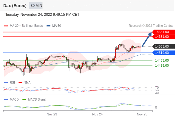 德国DAX指数期货 (Eurex)? 当日内: 看涨,当 14519.00 为支撑位,目标定在14664.00。