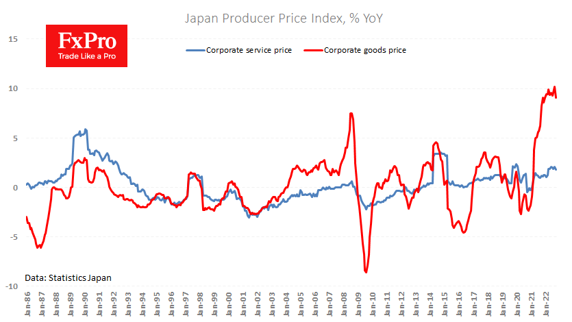 生产者价格的稳定可能需要2至4个月才能涉及到消费者价格通胀。 然而,我们已经得到了第一个早期迹象,日本没有实施任何紧缩政策,但受益于全球大宗商品价格下跌和经济活动放缓。