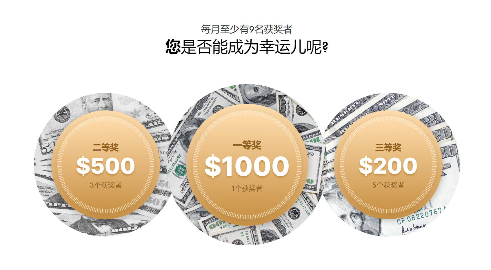 交易即有机会赢得奖金奖励。值得注意的是,这次活动每月至少有3*3=9名幸运儿获得丰厚现金奖励。