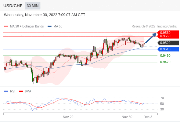在 0.9510 之上,看涨,目标价位为 0.9550 ,然后为 0.9560 。