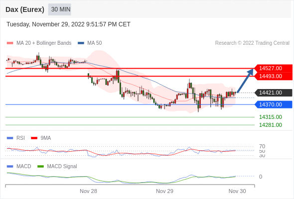 德国DAX指数期货 (Eurex)? 当日内: 看涨,当 14370.00 为支撑位。