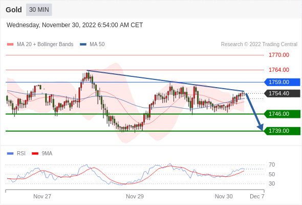 在 1759.00 之下,看跌,目标价位为 1746.00 ,然后为 1739.00 。