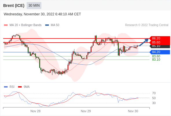 在 84.20 之上,看涨,目标价位为 85.60 ,然后为 86.20 。