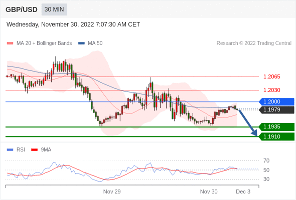 在 1.2000 之下,看跌,目标价位为 1.1935 ,然后为 1.1910 。