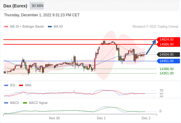 德国DAX指数期货 (Eurex)? 当日内: 有上涨的可能,目标价位定在 14624.00 。