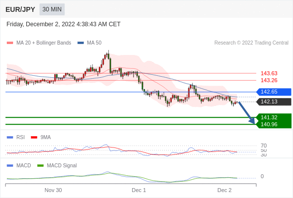 欧元/日元 当日内: 看跌,在 142.65 之下。