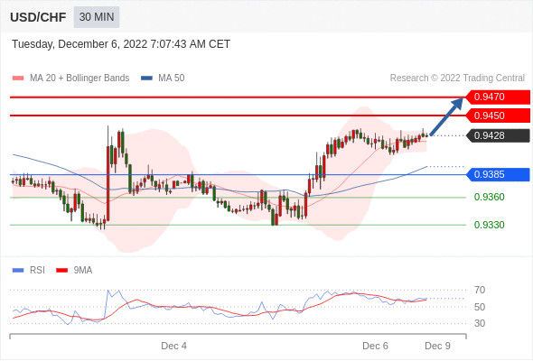 在 0.9385 之上,看涨,目标价位为 0.9450 ,然后为 0.9470 。