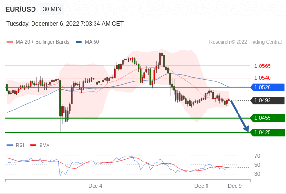 在 1.0520 之下,看跌,目标价位为 1.0455 ,然后为 1.0425 。
