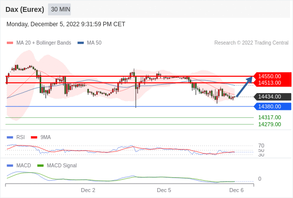 德国DAX指数期货 (Eurex)? 当日内: 有上涨的可能,目标价位定在 14550.00 。