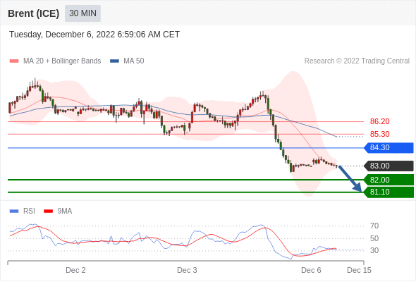 在 84.30 之下,看跌,目标价位为 82.00 ,然后为 81.10 。