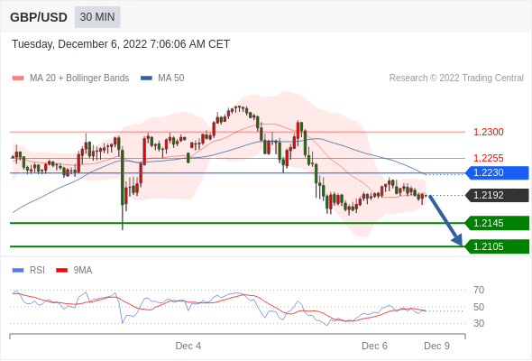 在 1.2230 之下,看跌,目标价位为 1.2145 ,然后为 1.2105 。