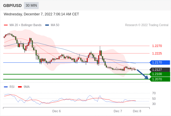 在 1.2170 之下,看跌,目标价位为 1.2100 ,然后为 1.2070 。