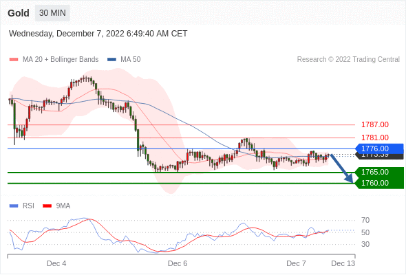 在 1776.00 之下,看跌,目标价位为 1765.00 ,然后为 1760.00 。