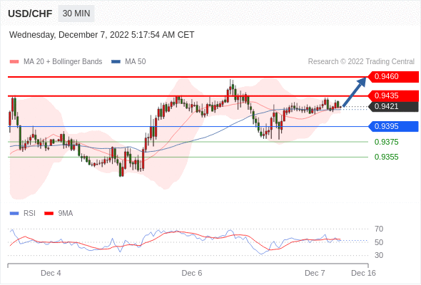 在 0.9395 之上,看涨,目标价位为 0.9435 ,然后为 0.9460 。