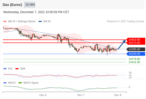 如跌破 14240 ,德国DAX指数期货 (Eurex) 目标方向定在 14178 和 14141 。