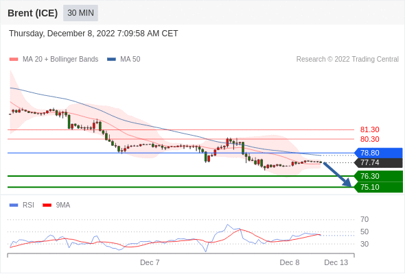 布伦特原油 (ICE)? (G3)? 当日内: 短期关键阻力位在78.80。