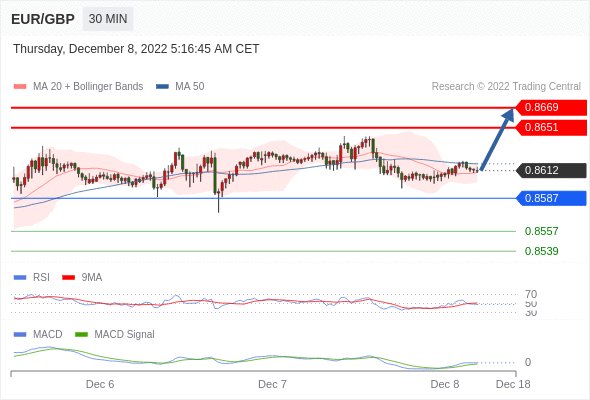 如跌破 0.8587 ,EUR/GBP 目标方向定在 0.8557 和 0.8539 。