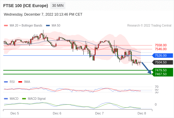 英国富时100指数期货 当日内: 看跌,在 7526.00 之下。