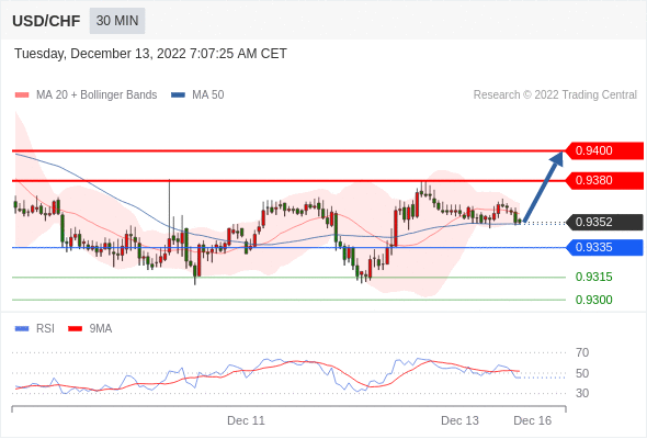 在 0.9335 之上,看涨,目标价位为 0.9380 ,然后为 0.9400 。
