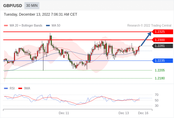 在 1.2235 之上,看涨,目标价位为 1.2300 ,然后为 1.2325 。