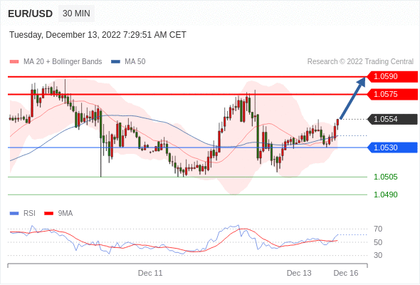 在 1.0530 之上,看涨,目标价位为 1.0575 ,然后为 1.0590 。