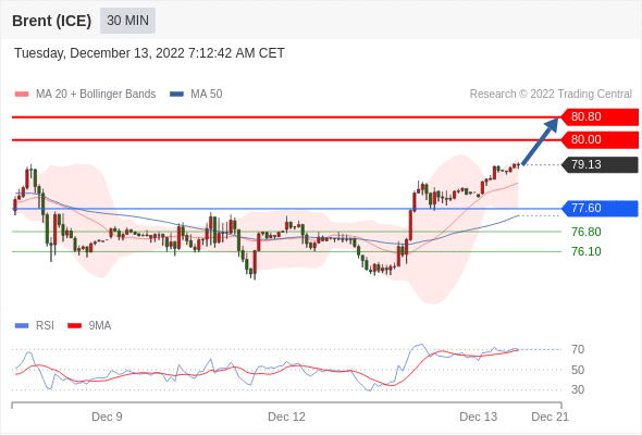 在 77.60 之上,看涨,目标价位为 80.00 ,然后为 80.80 。