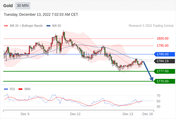 在 1789.00 之下,看跌,目标价位为 1777.00 ,然后为 1770.00 。