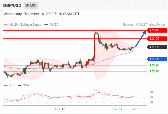 在 1.2300 之上,看涨,目标价位为 1.2400 ,然后为 1.2440 。